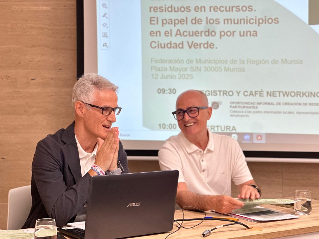 Murcia, 12 de junio de 2025. La Federación de Municipios de la Región de Murcia (FMRM) celebró el evento asociado a la EU Green Week 2025 “Convertir los residuos en recursos: el papel de los municipios en el Acuerdo por una Ciudad Verde”, una jornada centrada en acelerar la economía circular local y el cumplimiento de los objetivos europeos en gestión de residuos. La sesión tuvo lugar en la sede de la FMRM y reunió a responsables municipales, técnicos y socios del proyecto LIFE GreenMe5.